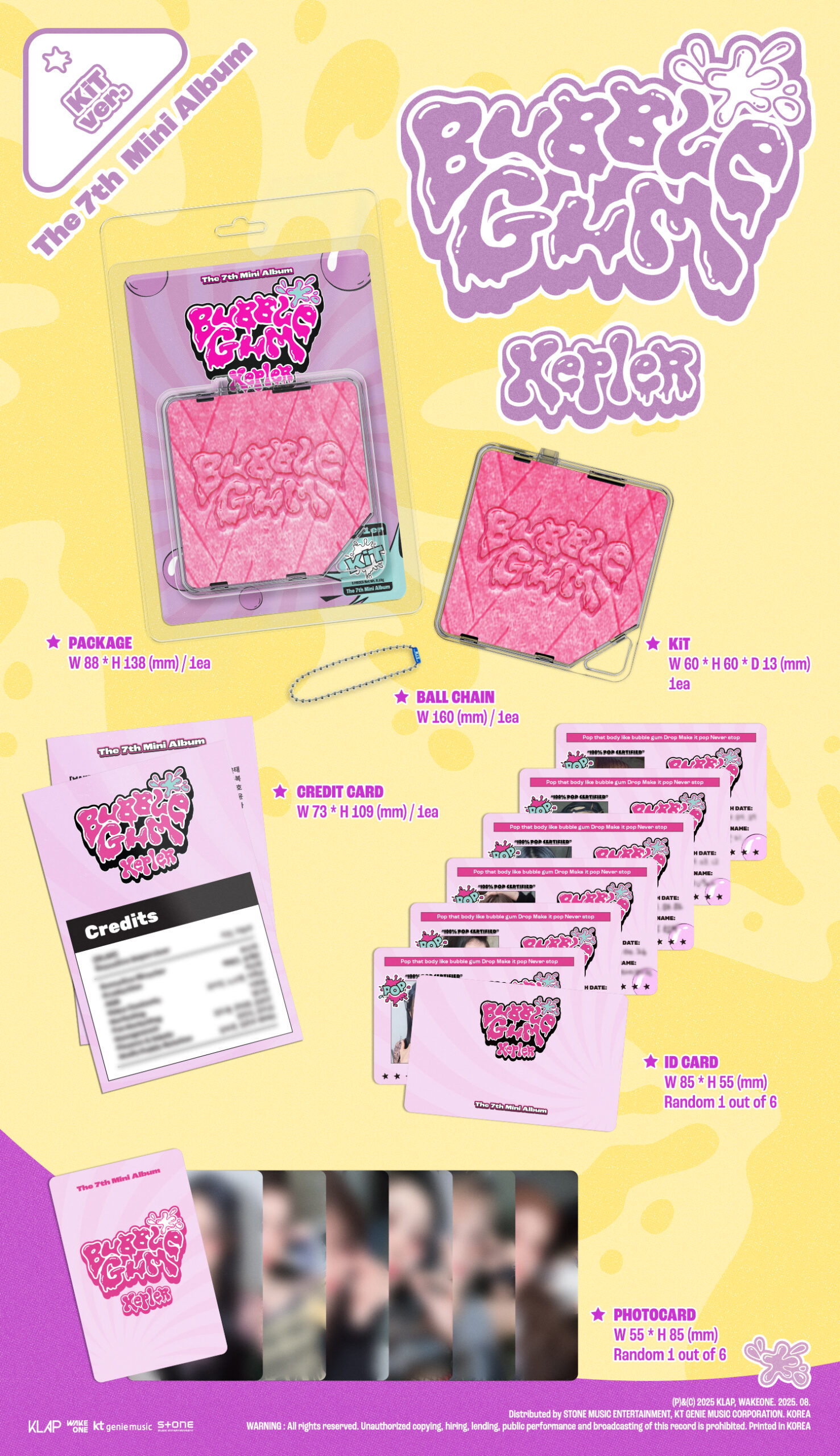 - Contiene: Package, KiT, Ball Chain, Credit Card, 1 ID Card random, 1 Photocard random