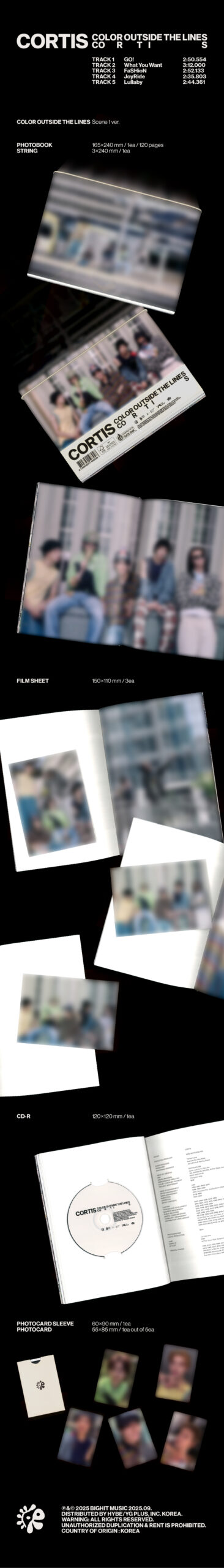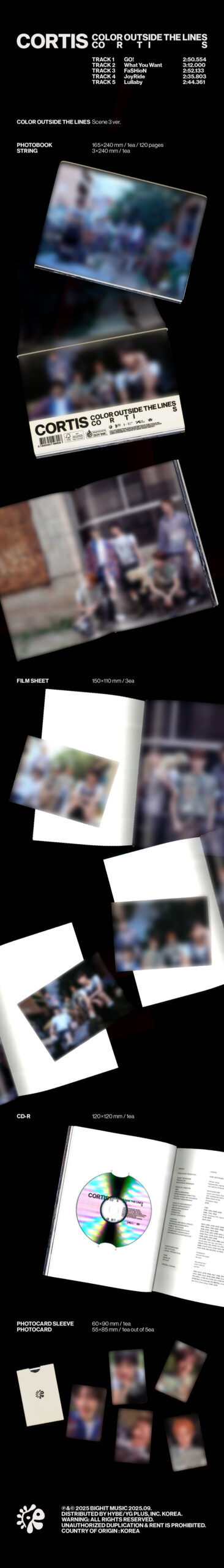 - Contiene: CD, Photobook: 120p, String, 3 Film Sheet, Photocard Sleeve, 1 Photocard random