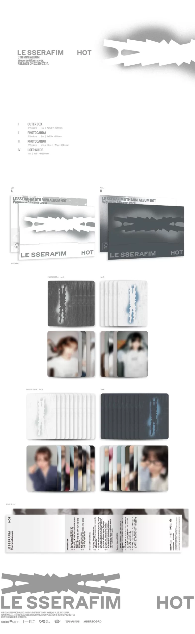 - Contiene: Outer Box: 120x90mm, 5 Photocard A random, 5 Photocard B random, User Guide