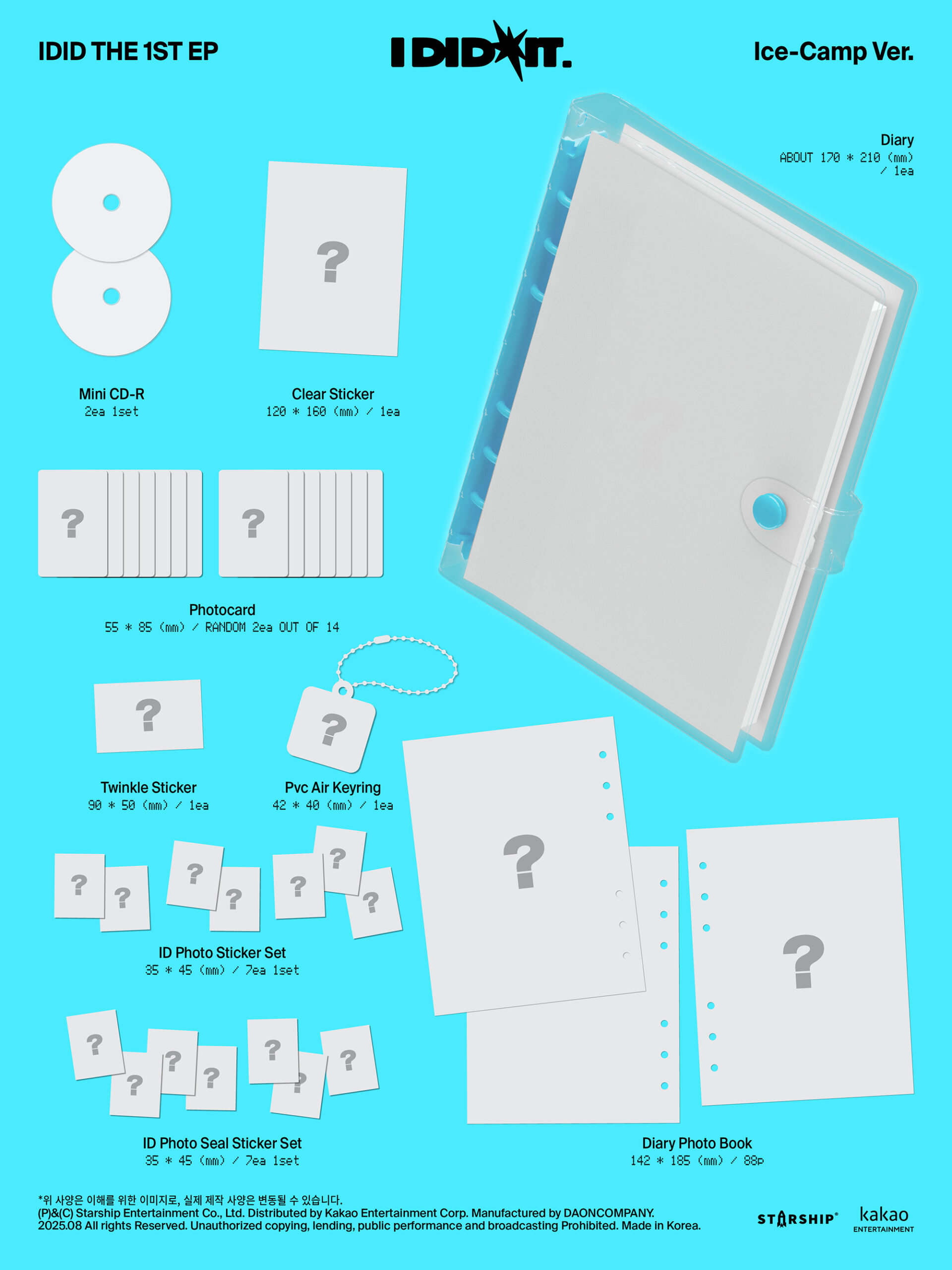 - Contiene: Photobook: 112p, CD, Photo Postcard Set: 8p, 1 Photocard random, Removable Sticker, Mini Poster Sólo en pre-venta: Player Ticket Set: 8p