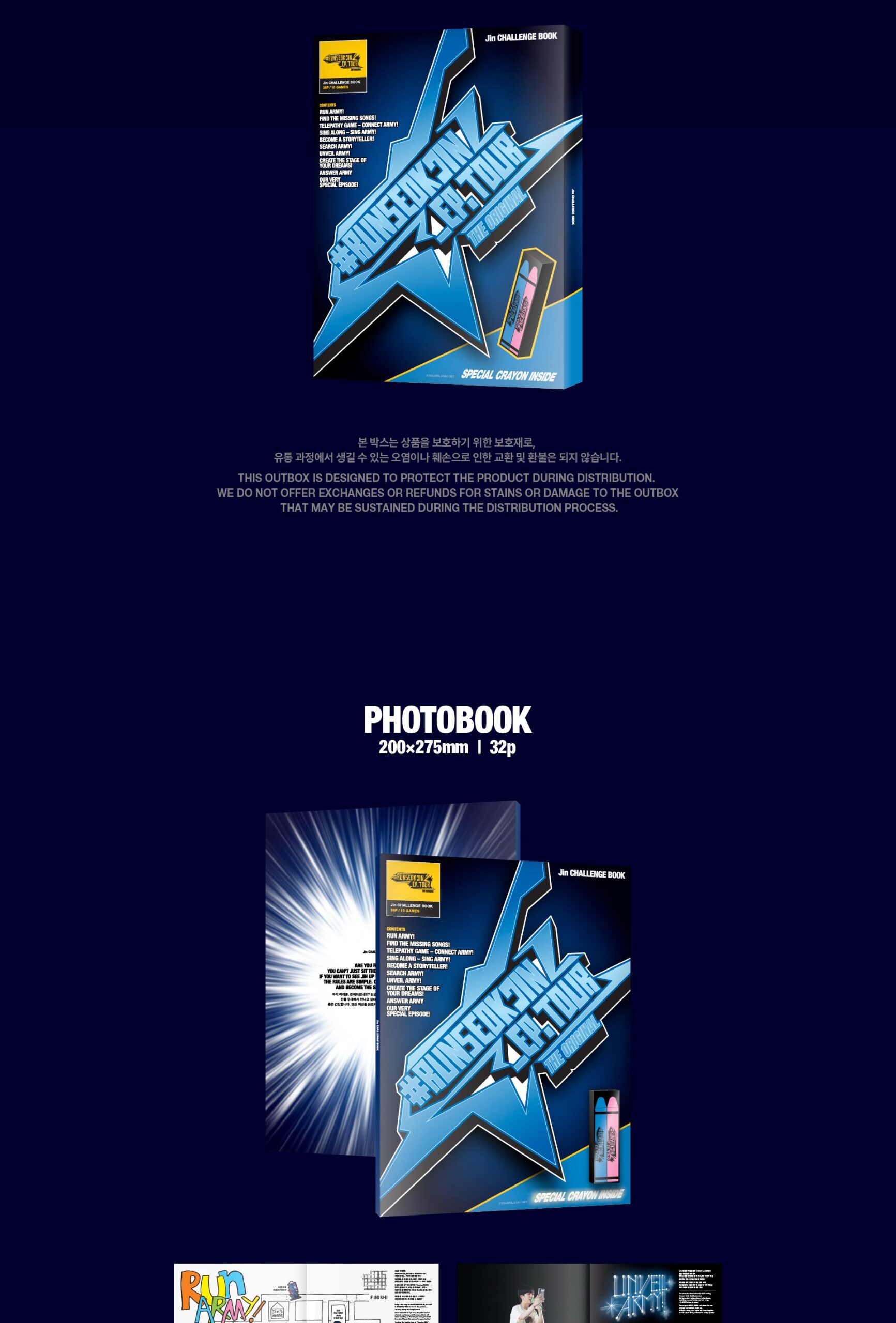- Challenge Book: Photobook: 32p, Crayon Set, Sticker Set, Mission Roulette, Photocard