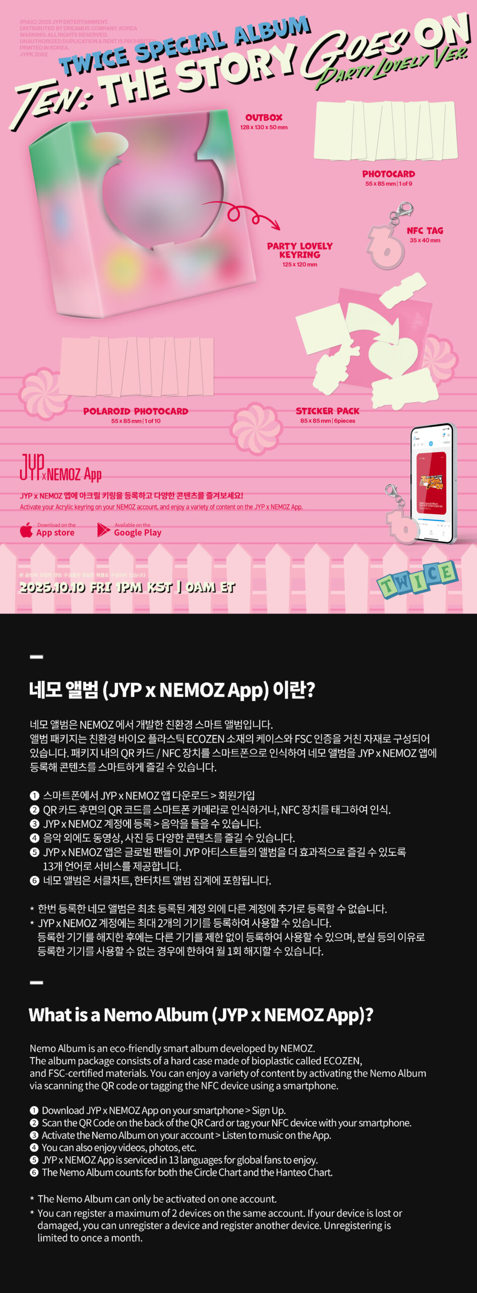 - Contiene: Out Box, Party Lovely Kerying, NFC Tag, 1 Photocard random, 1 Photocard Polaroid random, 6 Sticker