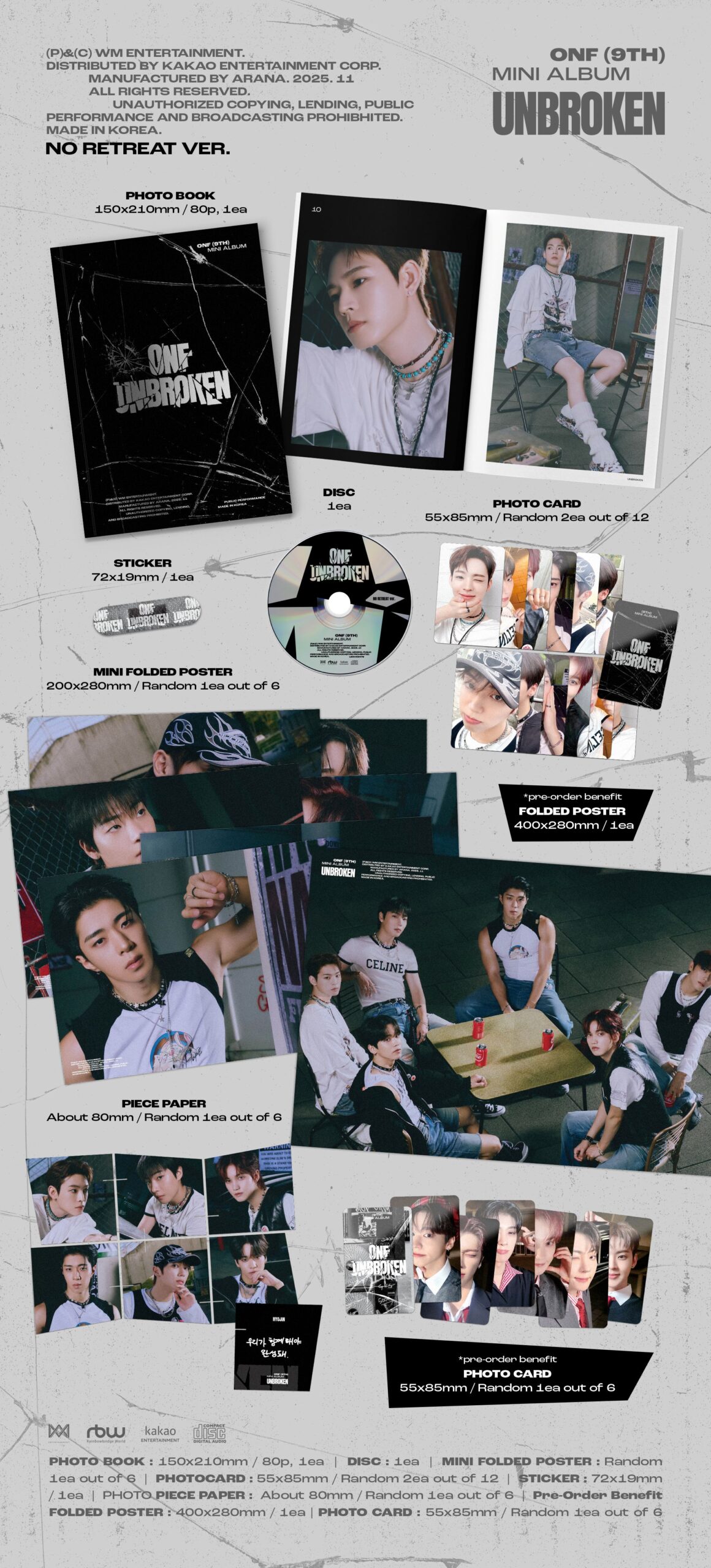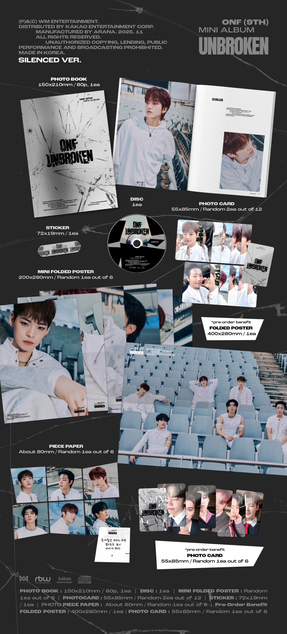 • SET 2 versiones, cada una contiene: CD, Photobook: 80p, Sticker, 2 Photocard random, 1 Mini Folded Poster random, 1 Piece Paper random
